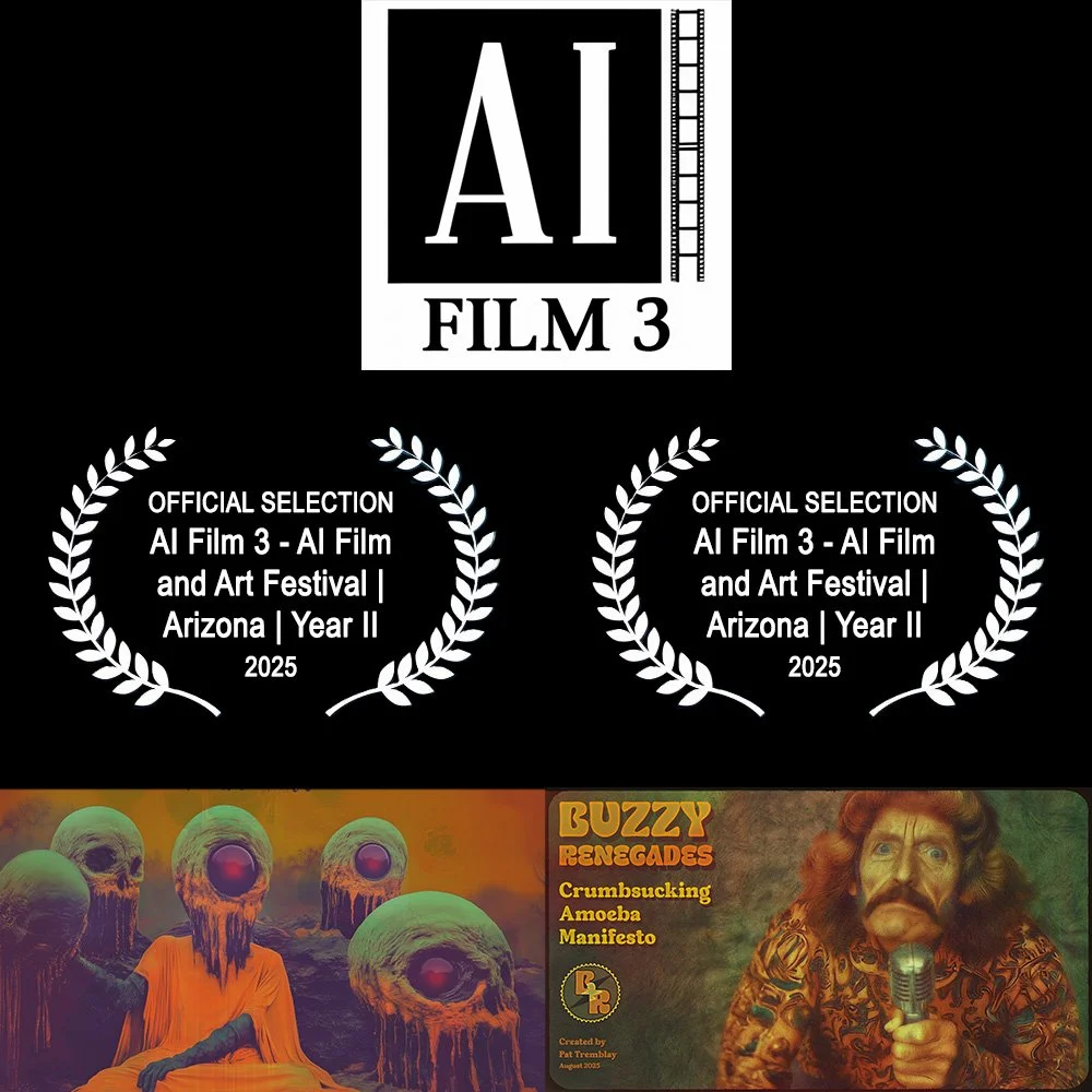 𝗗𝗢𝗨𝗕𝗟𝗘 𝗦𝗘𝗟𝗘𝗖𝗧𝗜𝗢𝗡! Real glad to announce that the AI Film 3 - AI Film and Art Festival in Arizona has not only selected 𝗧𝗵𝗲 𝗗𝗶𝗺𝗲𝗻𝘀𝗶𝗼𝗻𝗮𝗶𝗿𝗲𝘀: 𝗣𝗿𝗲𝗹𝘂𝗱𝗲 𝘁𝗼 𝗔𝗯𝗿𝗮𝘅𝗮𝘀, but also my AI rock video 𝗖𝗿𝘂𝗺𝗯𝘀𝘂𝗰𝗸𝗶𝗻𝗴 𝗔𝗺𝗼𝗲𝗯𝗮 𝗠𝗮𝗻𝗶𝗳𝗲𝘀𝘁𝗼!