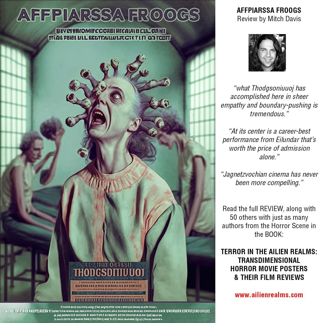 So to promote the latest 𝗛𝗼𝗹𝗶𝗱𝗮𝘆 𝗦𝗽𝗲𝗰𝗶𝗮𝗹 for the 𝗧𝗲𝗿𝗿𝗼𝗿 𝗶𝗻 𝘁𝗵𝗲 𝗔𝗜𝗹𝗶𝗲𝗻 𝗥𝗲𝗮𝗹𝗺𝘀 𝗯𝗼𝗼𝗸, I'm revealing a few more blurbs and posters! Now comes the time to show you the mighty madness of 𝗠𝗶𝘁𝗰𝗵 𝗗𝗮𝘃𝗶𝘀 and his demented take on 𝗔𝗙𝗙𝗣𝗜𝗔𝗥𝗦𝗦𝗔 𝗙𝗥𝗢𝗢𝗚𝗦! Get the book here: www.ailienrealms.com